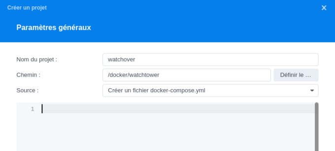 Comme on l'a vu dans mon billet précédent, on crée un dossier 'docker' si ce n'est déjà fait et on crée un sous dossier 'watchtower'.